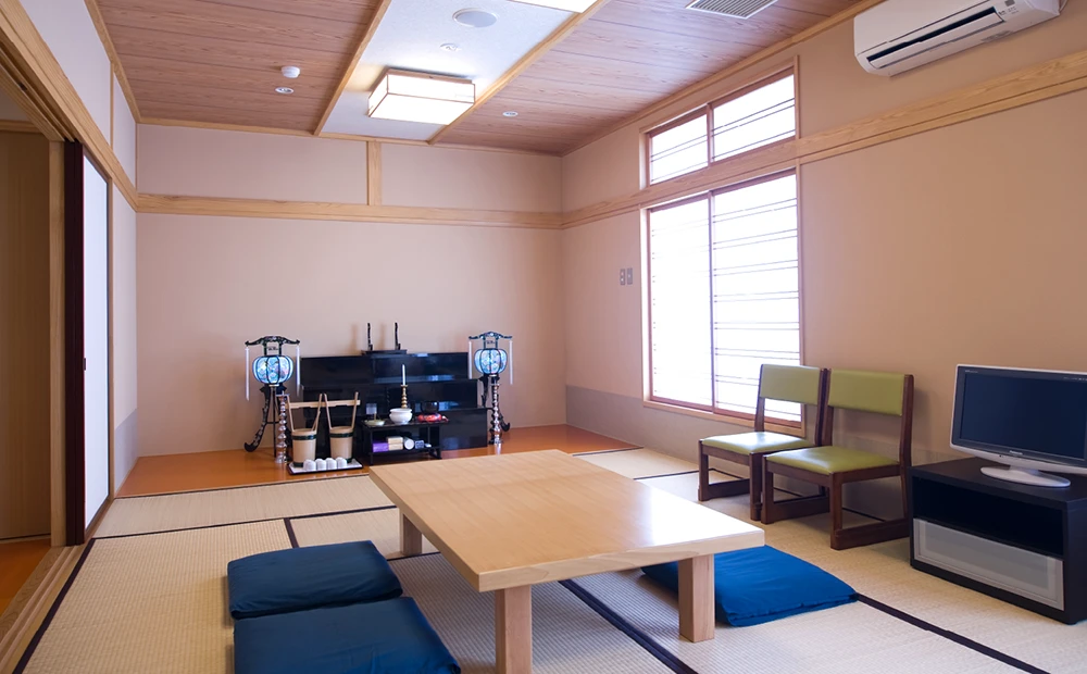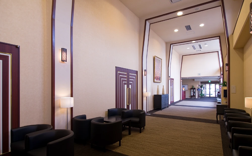 家族が集い、憩う空間が広がる。まるで自宅にいるような感覚で故人様とお別れすることができる家族葬ホールです。