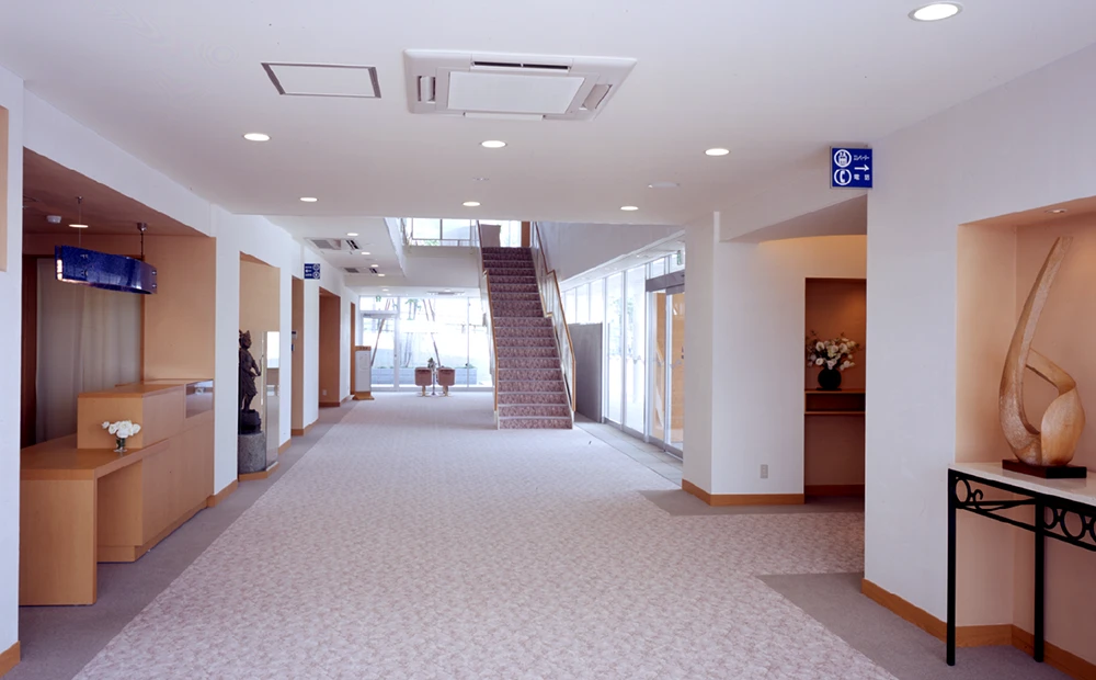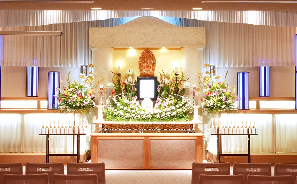 モダンなインテリア内観は白や木目を基調とし、時代に合ったデザイン祭壇をご用意しております。